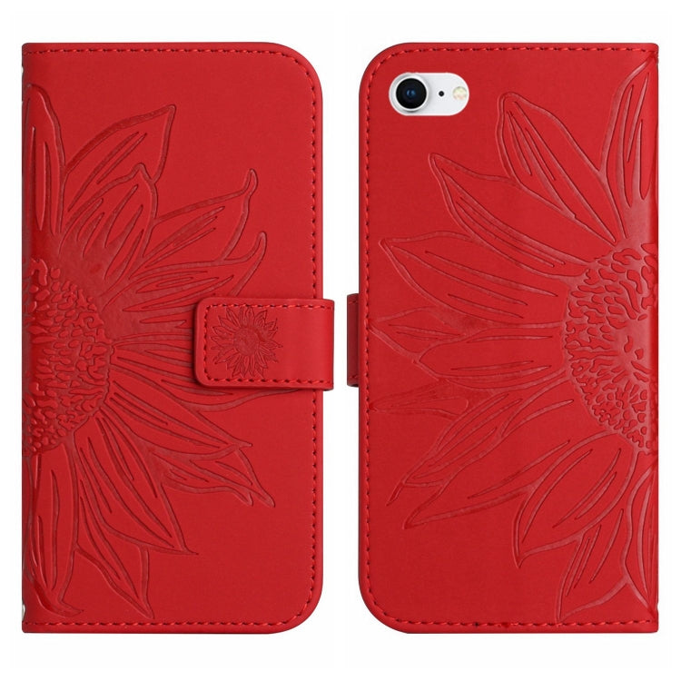 Funda de Cuero para iPhone 7/8 Skin Feel Sun Flower Pattern Flip con Cordón (Rojo)