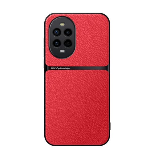 Funda para Teléfono Huawei Mate 50 Piel de Lichi Cobertura Total Magnética (Roja)