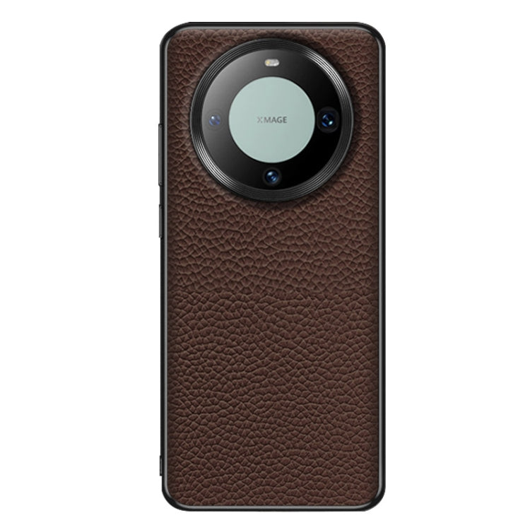 Funda para Huawei Mate 60 con Textura Litchi de Cuero Genuino (Café)