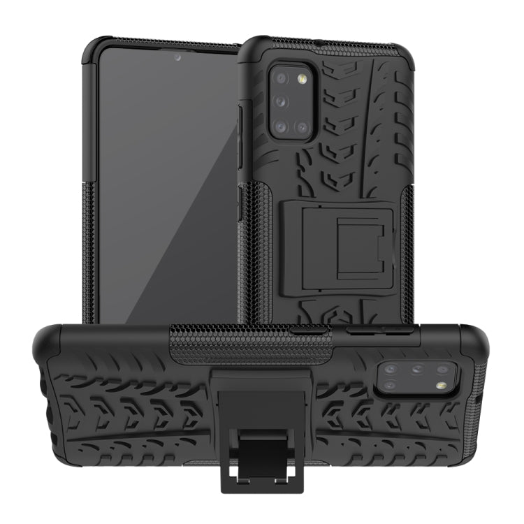 Funda Protectora Samsung Galaxy A31 TPU + PC Prueba de Golpes Textura Neumáticos con Soporte (Negro)