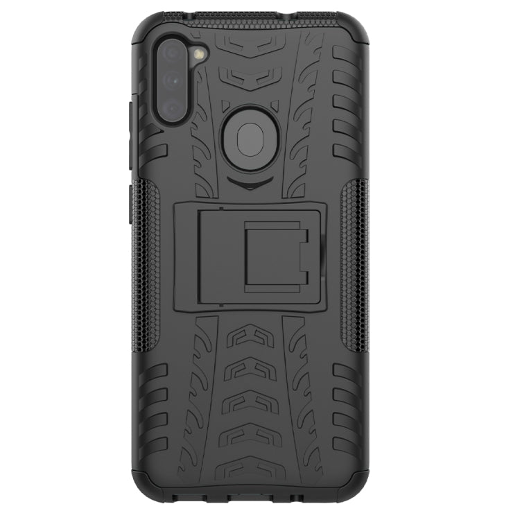 Funda Protectora TPU + PC para Samsung Galaxy M11 con Textura de Neumáticos y Soporte (Negro)