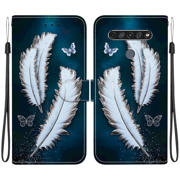 Funda de Cuero para LG K61 con Dibujo de Colores y Textura de Cristal (Plumas de Mariposa Blancas)