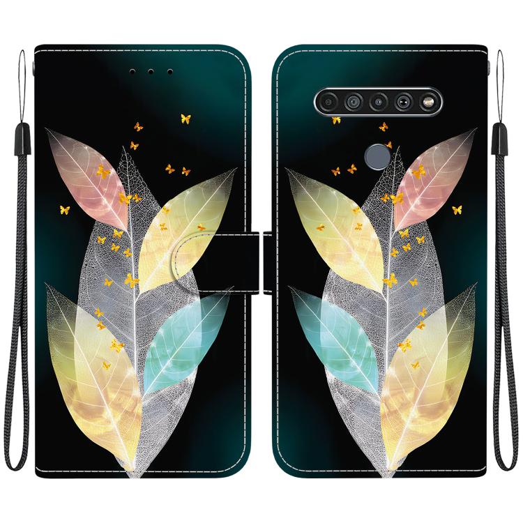 Funda de Cuero para LG K61 con Dibujo de Colores y Textura de Cristal (Hojas de Colores)