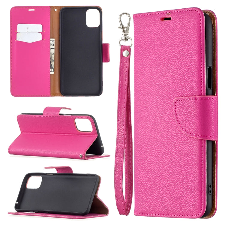 Funda de Cuero LG K42 Litchi Texture Horizontal Flip con Soporte y Billetera (Rose Rojo)