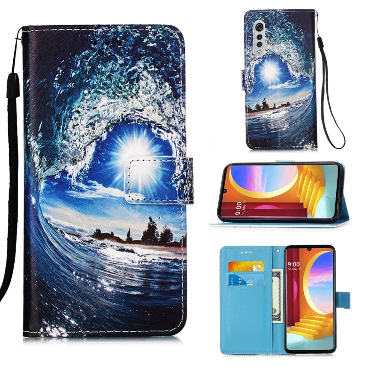 Funda Horizontal Flip para LG Velvet 2 Pro con Patrón Ondas y Sol, Tarjeta Slot, Wallet y Lanyard