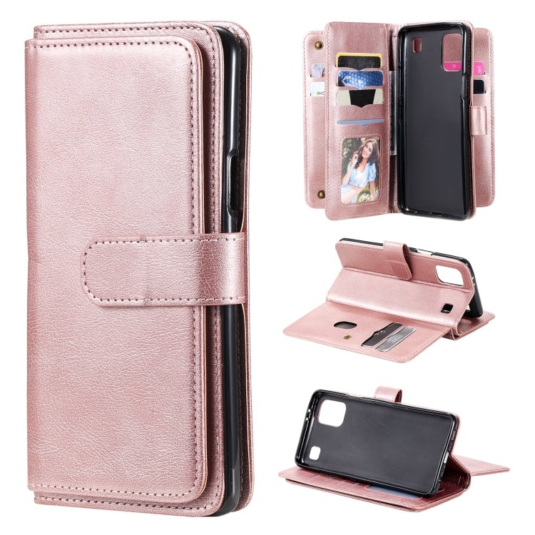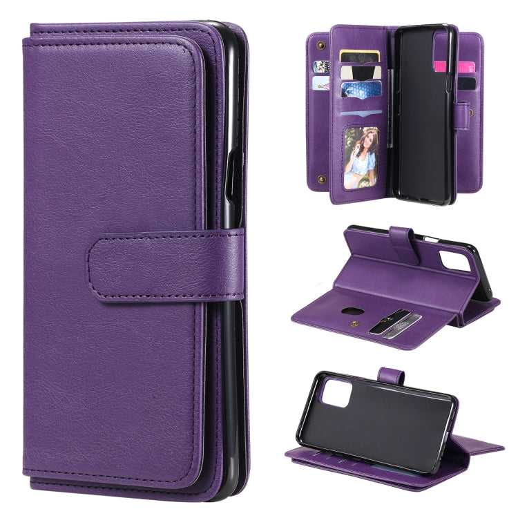 Funda Cuero LG K42 Multifuncional Hebilla Cobre Magnética Flip Horizontal 10 Ranuras (Púrpura)
