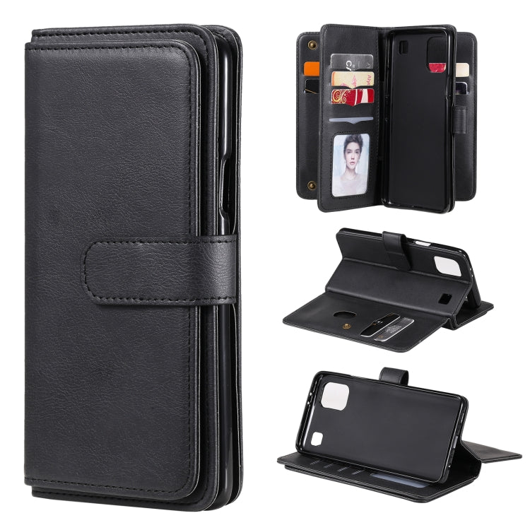 Funda Cuero LG K92 Multifuncional Hebilla Cobre Magnética Horizontal Flip con 10 Tarjetas (Negro)