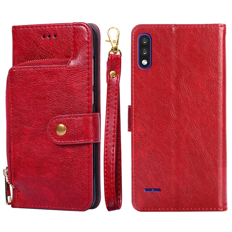 Funda de Cuero Horizontal Flip con Cremallera y Soporte para LG K22 (Oro Rosa)