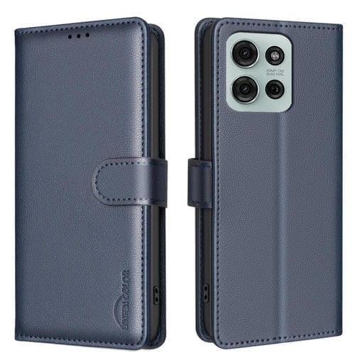 Funda de Cuero Antirrobo Rfid Motorola Moto G75 5G con Textura Litchi (Azul)