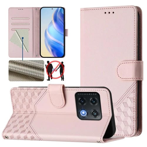 Funda de Cuero Rfid con Relieve en Panal para OnePlus 10 Pro 5G (Rosa)