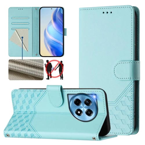 Funda de Cuero Rfid con Relieve de Panal Global para OnePlus 12 5G (Verde Menta)