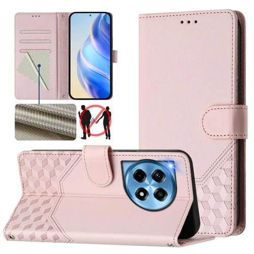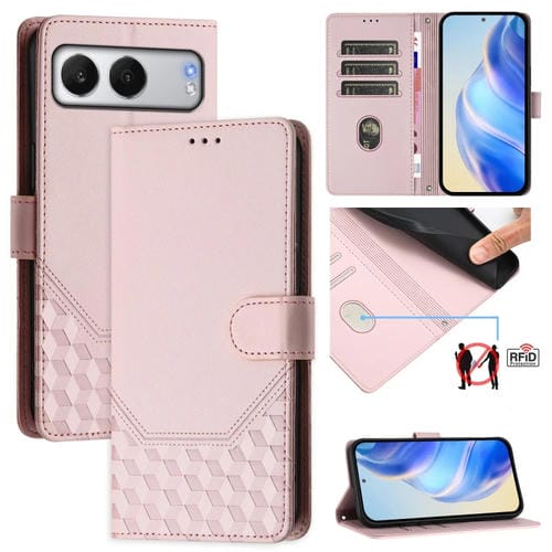 Funda de Cuero Rfid con Relieve en Panal para OnePlus Nord 4 5G (Rosa)