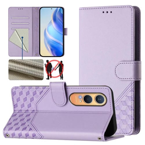 Funda de Cuero Rfid con Relieve en Panal para OnePlus Nord Ce4 Lite (Morado Claro)