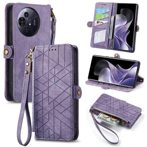 Funda de Cuero para TCL 50 5G con Hebilla Lateral y Cremallera Geométrica (Morado)