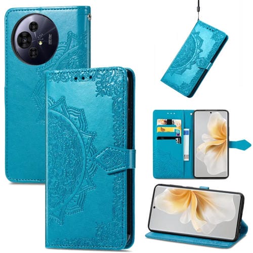 Funda de Cuero con Relieve Flor de Mandala para TCL 50 Pro Nxtpaper (Azul)