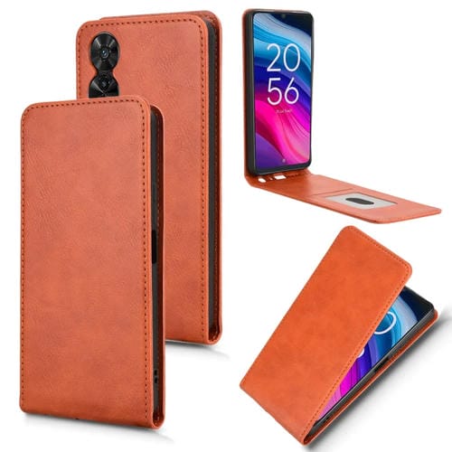 Funda de Cuero para Teléfono TCL 503 con Tapa Vertical Magnética (Marrón)