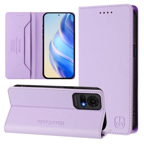 Funda de Cuero Rfid para TCL 30 4G 5G 30+ Rc01 con Succión Magnética y Doble Pliegue (Morado Claro)