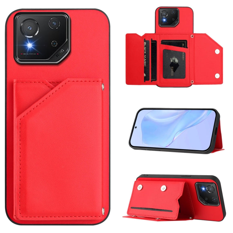 Estuche para Asus Rog Phone 8 Pro con 4 Ranuras para Tarjetas y Correa para Muñeca (Rojo)