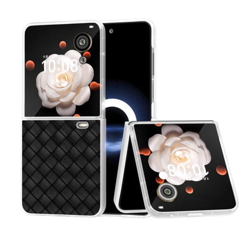 Estuche para Honor Magic V Flip de PU con Textura Celosía y Marco Translúcido Esmerilado (Negro)