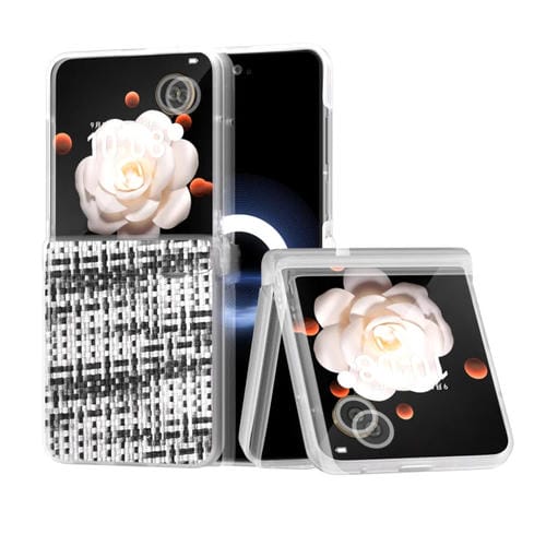 Estuche para Honor Magic V Flip de PU con Textura Tejida y Marco Translúcido Esmerilado (Negro)