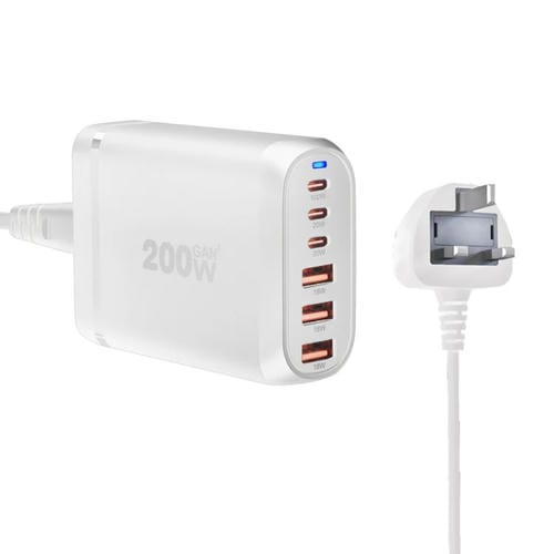 Adaptador Multipuerto Gan PD100W Tipo C x3 USB x3 para Portátil (Blanco) Enchufe Británico