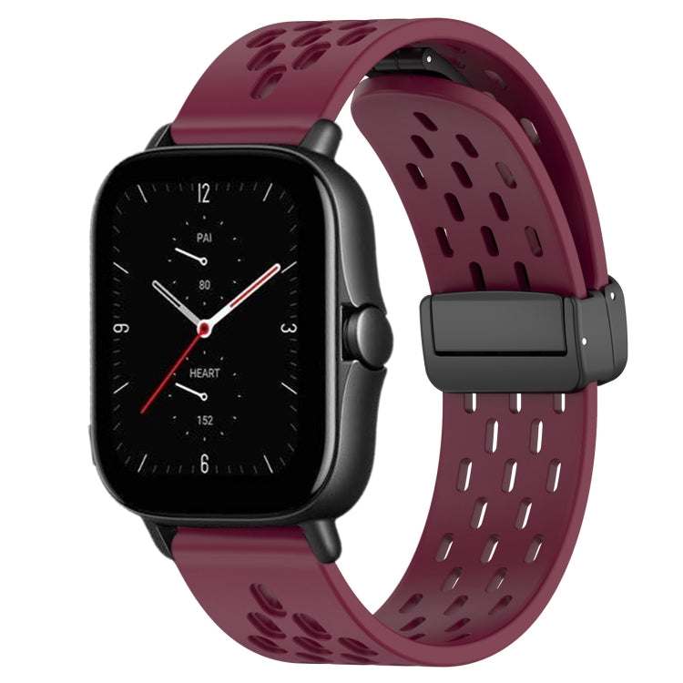 Correa de Silicona para Amazfit GTS 2E con Cierre Magnético Plegable 20mm (Borgoña)