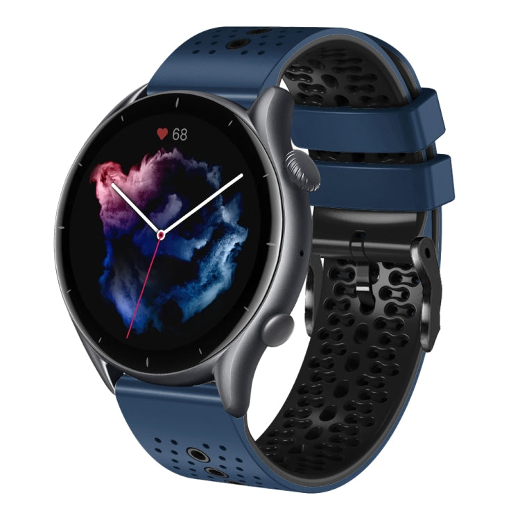 Correa de Reloj para Amazfit GTR 3 22mm Silicona Perforada Dos Colores (Azul Medianoche + Negro)