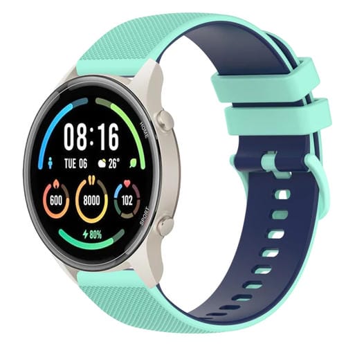 Banda de Reloj silicona Xiaomi Watch Color 2 22mm dos colores cuadros (Verde Azulado + Azul)