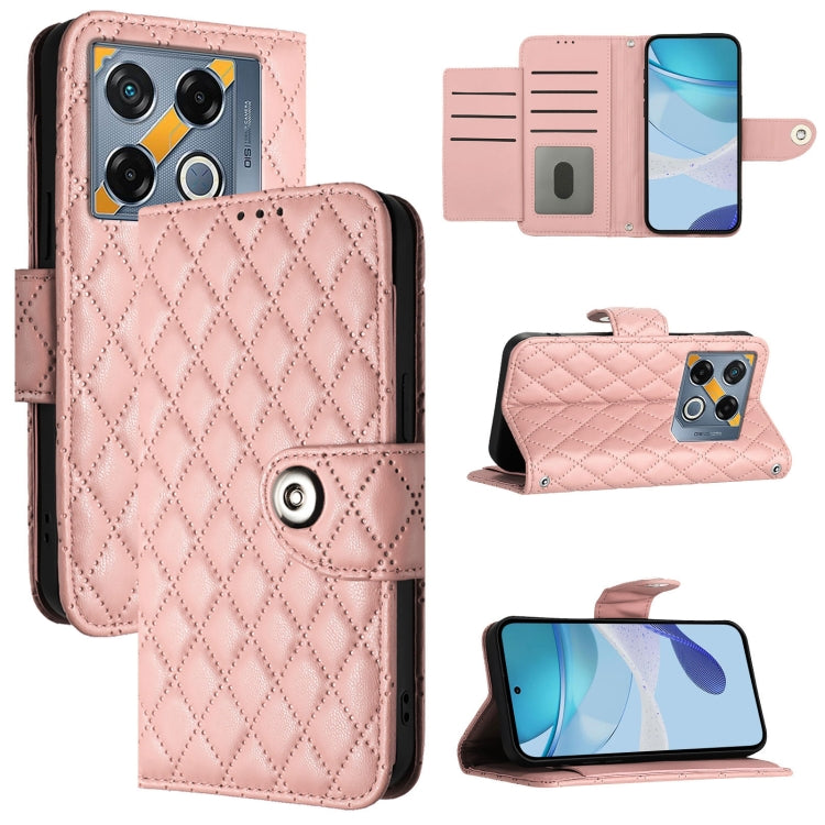Funda de Cuero para Infinix Note 40 5G con Tapa Textura Romboidal y Cordón (Rosa Coral)