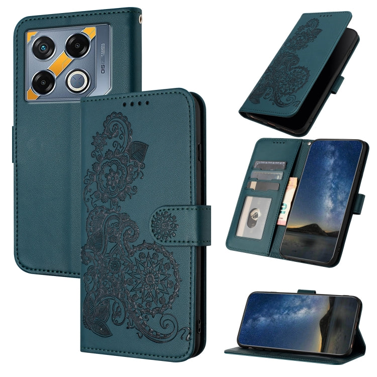 Funda de Cuero con Tapa para Infinix Note 40 4G con Relieve Flor de Datura (Verde Oscuro)