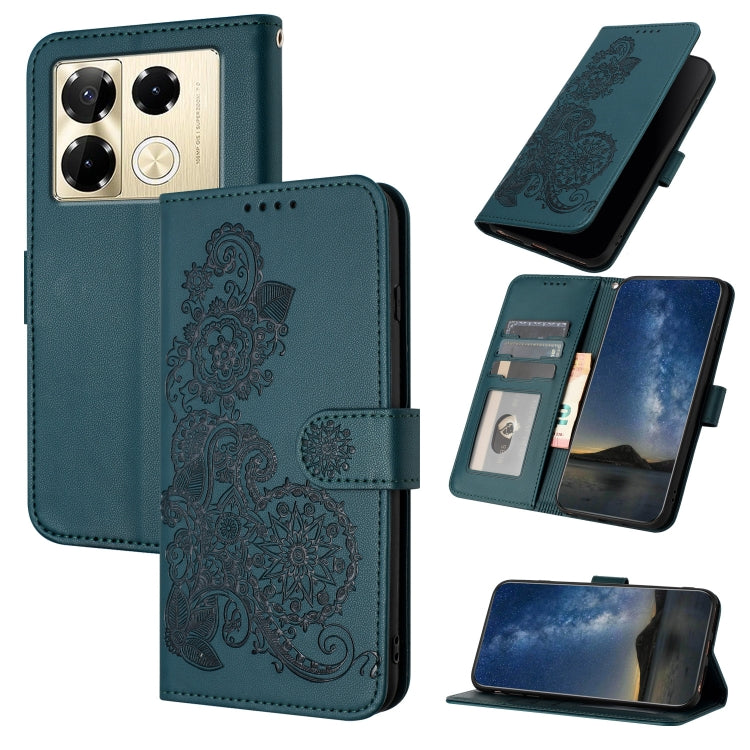 Funda de Cuero para Infinix Note 40 Pro 4G/5G con Tapa en Relieve Datura Flower (Verde Oscuro)