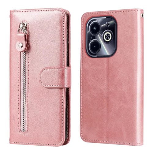 Funda de Piel con Textura de Becerro y Cremallera para Infinix Hot 40I (Oro Rosa)