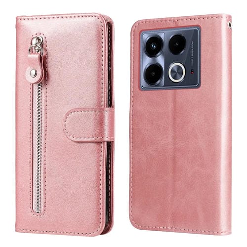 Funda de Piel con Cremallera y Textura de Becerro para Infinix Note 40 5G (Oro Rosa)