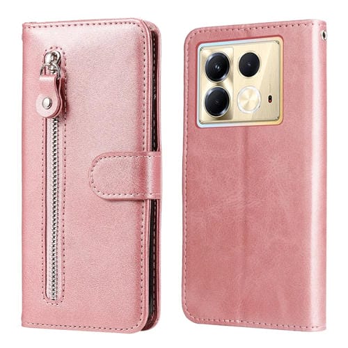 Funda de Piel con Textura de Becerro y Cremallera para Infinix Note 40 Pro 4G/5G/Pro+ (Oro Rosa)