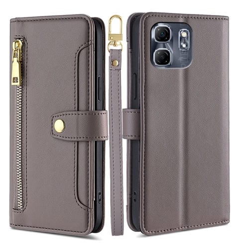 Funda de Cuero con Cremallera y Diseño de Oveja para Teléfono Infinix Hot 50I 4G (Gris)