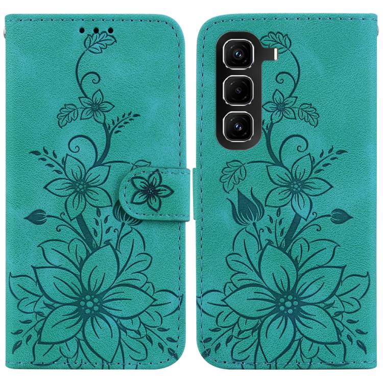 Funda de cuero con relieve de lirio para Infinix Hot 50 Pro 4G (verde)
