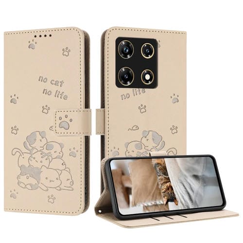 Funda de Cuero para Infinix Note 30 Pro con Diseño de Gatito en Relieve y Cordón (Beige)