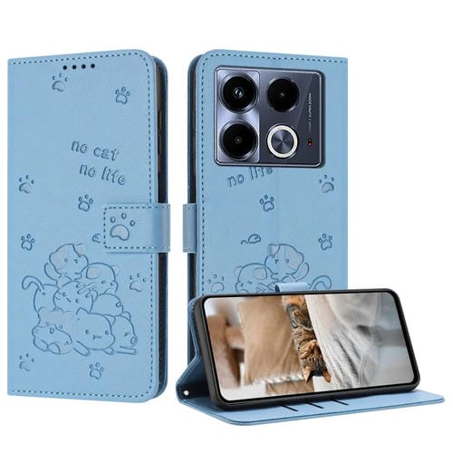 Funda de Cuero para Infinix Note 40 5G con Diseño de Gatito en Relieve y Cordón (Azul)