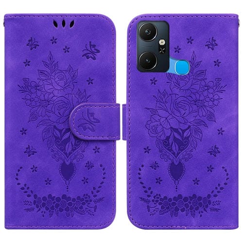 Estuche para Teléfono Infinix Smart 6 Plus Butterfly Rose Cuero En Relieve (Púrpura)