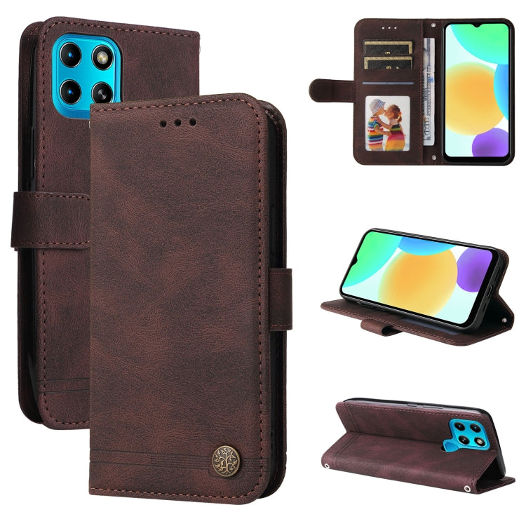 Skin SenTFle Life Button de Metal y Cuero para Infinix Smart 6 (Marrón)