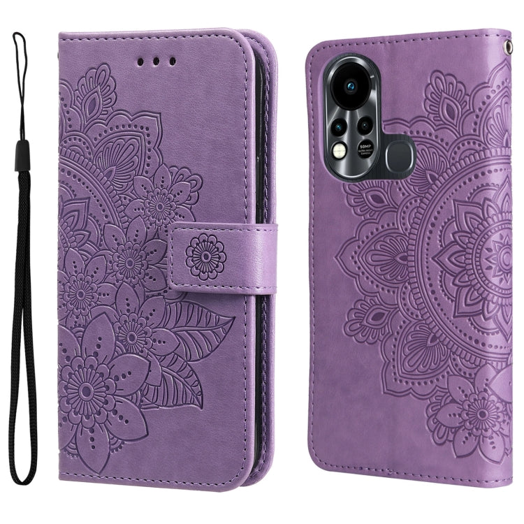 Estuche de Cuero Challeado en Relieve para Infinix Hot 11S Flores de 7 Pétalas (Púrpura Claro)