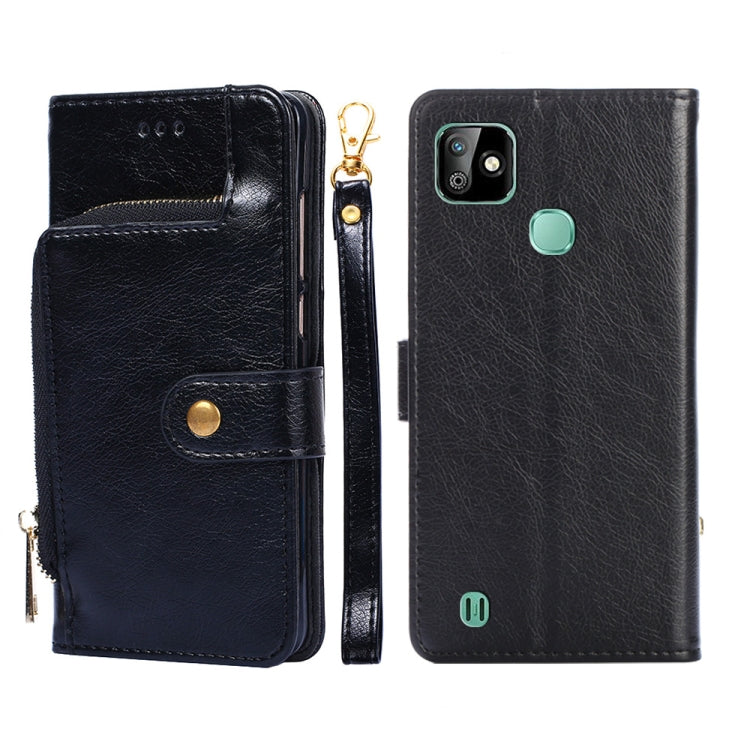 Funda de Cuero para Infinix Smart HD 2021 X612 con Cremallera (Negro)
