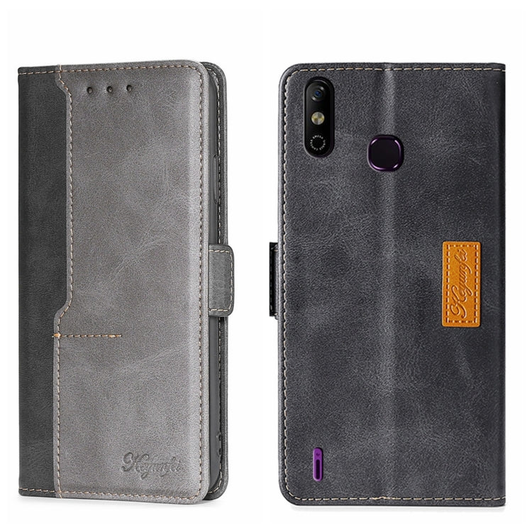 Estuche para teléfono Infinix Hot 9 Note 7 Lite X655C cuero con hebilla lateral (Negro + Gris)