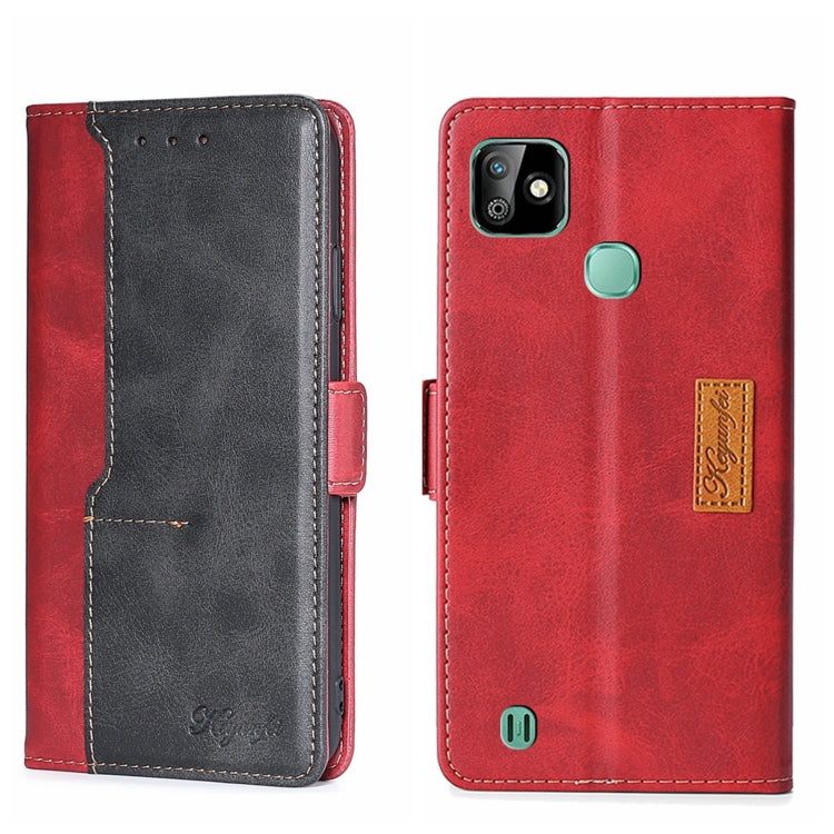 Funda de Cuero para Infinix Smart 4 X653 con Hebilla Lateral y Contraste de Color (Rojo + Negro)