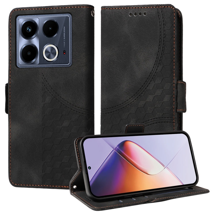 Funda de Cuero para Infinix Note 40 4G con Diseño de Rombos y Estrellas en Relieve (Negra)