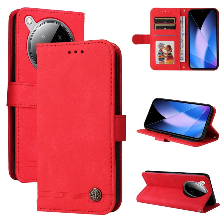 Funda de Cuero con Botones de Metal y Diseño Árbol de la Vida para Infinix Zero 40 4G/5G (Rojo)