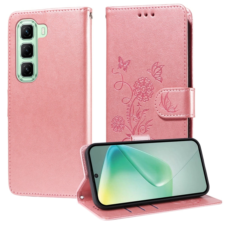 Funda de Cuero para Infinix Zero 40 4G/5G con Diseño de Mariposas y Flores en Relieve (Oro Rosa)