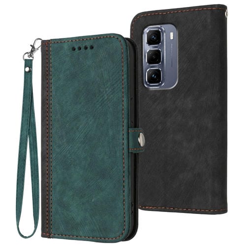 Funda de Cuero para Infinix Hot 50 Pro+ 4G con Correa y Hebilla Doble Plegable (Verde Oscuro)