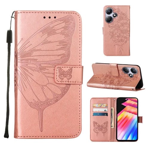 Estuche para Teléfono Infinix Hot 30 Play X6835 Cuero Mariposa en Relieve (Oro Rosa)
