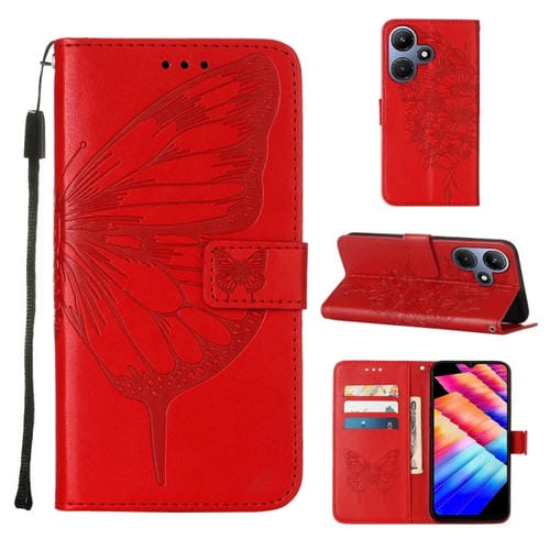 Estuche para Teléfono Infinix Hot 30I X669 Cuero con Mariposa en Relieve (Rojo)